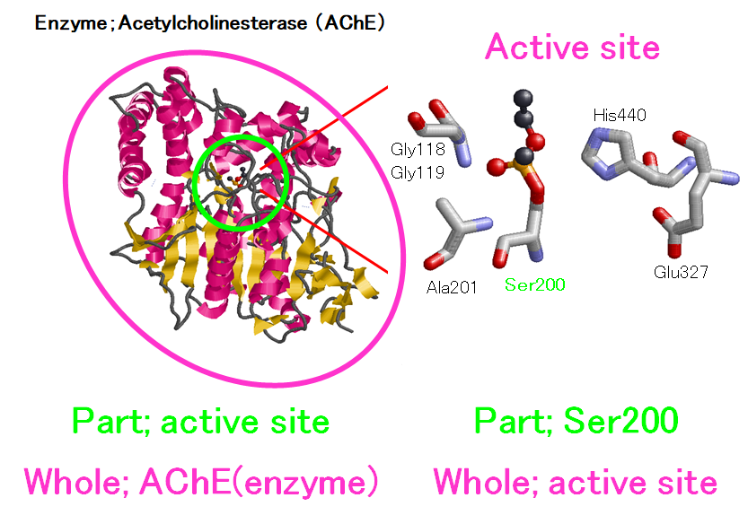 This relation indicates the relationships between whole entity and its part. Typical examples are Enzyme and its “active site”, or “active site” and Amino Acid residues in the active site.